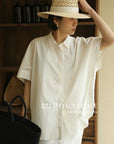 Short-sleeve shirt crafted from textured Korean cotton.