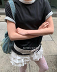 Features subtle contrast at collar and sleeve hems for a minimal yet playful twist.