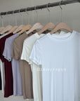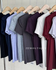 An everyday essential made from breathable, ultra-soft cotton. This minimalist plain tee features a clean cut, relaxed silhouette, and comfortable feel – perfect for layering or wearing on its own. Available in ten versatile shades: light grey, white, ivory, wine purple, khaki, red, black, navy, off-white, and dark grey.