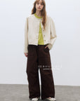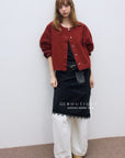 This jacket blends the structure of denim with the soft texture of corduroy. Offered in three colors—red, cream, and black—it features a clean, basic cut for easy layering. A casual essential with a subtle tactile edge.